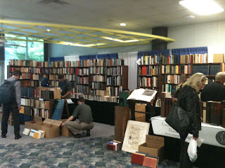 At Kalamazoo, an entire cafeteria is transformed for one weekend into a giant exhibit of books about the middle ages (with a few random volumes about the ancient or renaissance eras). Publishers from around the world bring their latest offerings, and...and this is the amazing part...some used bookstores show up as well. With discounted books. Steeply discounted books. All of which are about medieval studies. Thousands of books, as far as the eye can see, all about the middle ages!